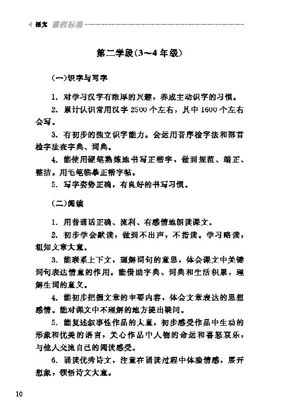 家长可以把课程标准中定义的各个学段的具体指标对照看下,比如小学3-4年级的语文的要求,分别从识字与写字、阅读、习作、口语交际和综合性学习五方面进行了具体标准定义。