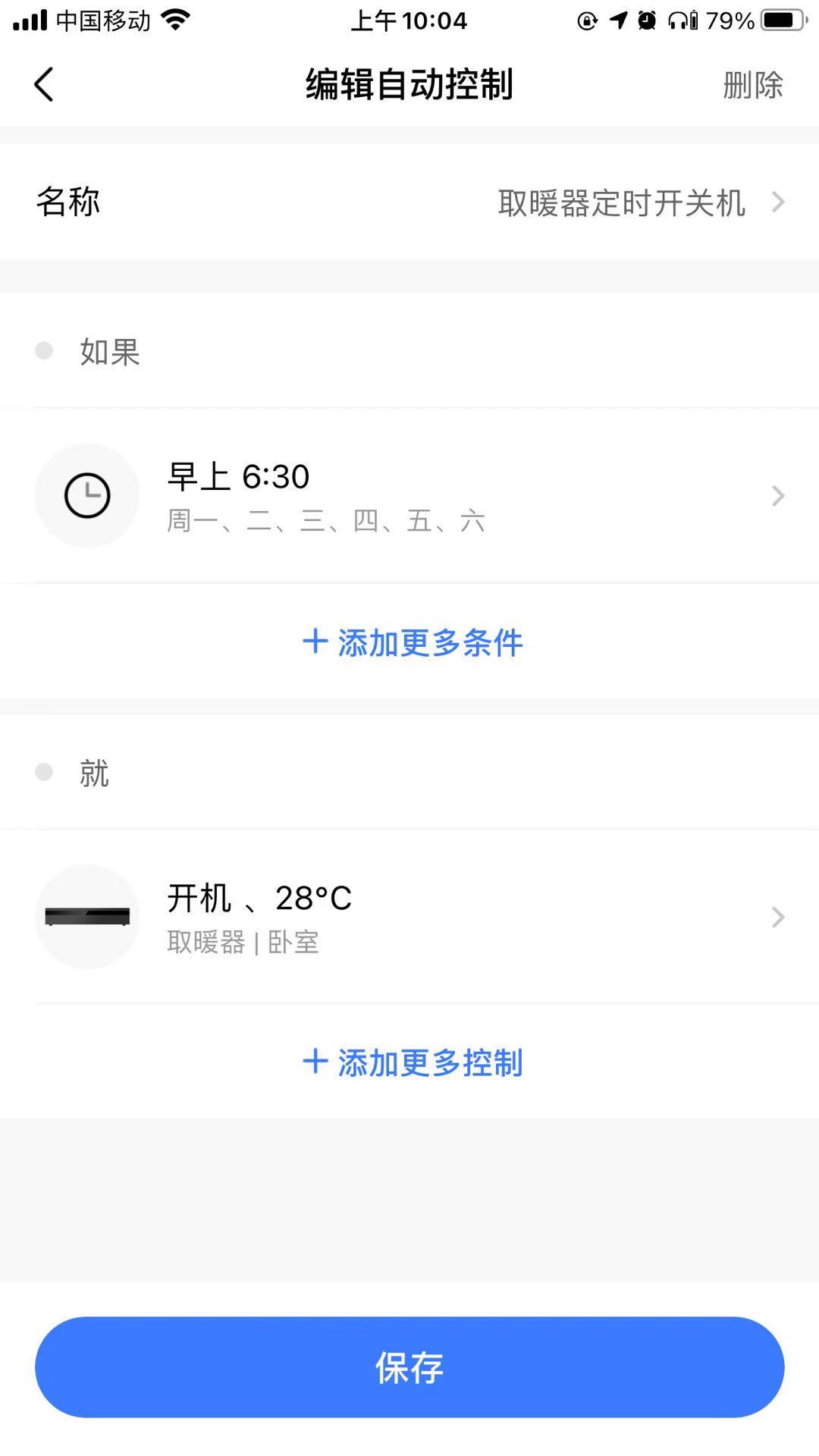 同时,通过一些智能场景可以设置自动开机的时间,比如要在孩子6点45分能起床,那么可以提前15分钟即设置每天的6点30分开机预热房间。